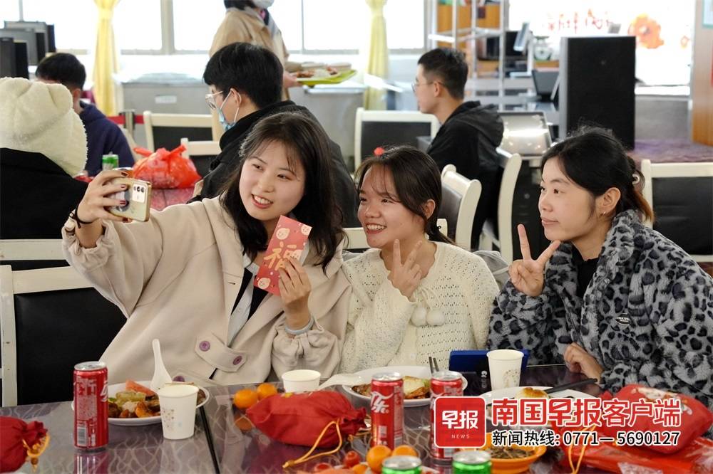 金虎辭歲,玉兔迎新,留校過年也年味十足。2023年春節,廣西高校部分學生由于各種因素決定留校過年。多所高校為學生們準備了花式新春禮,年夜飯、大禮包、年味菜譜、游園活動……讓留校過年的學生感受到濃濃的節日氛圍。